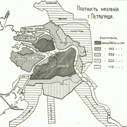 Плотность населения г. Петрограда в 1915 году